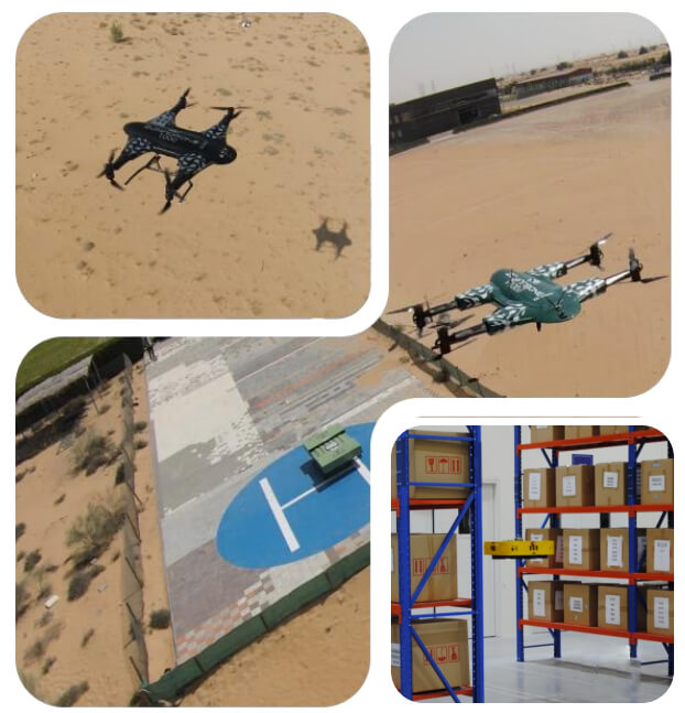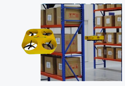 A compact indoor inventory drone, operates in GPS-denied environments like warehouses or military armories, obstacle avoidance technology
